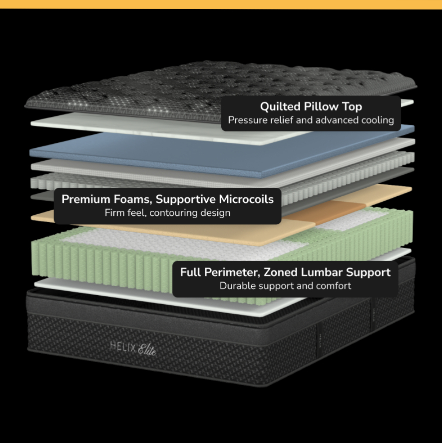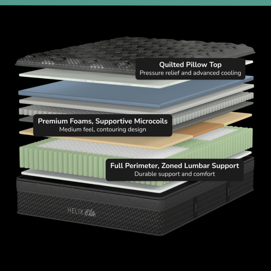 Helix has committed themselves to every detail in their Elite line of mattresses. From their cutting edge two-part design to their most advanced cooling technology. These mattresses are a statement that you’ve treated yourself to the very best Helix has to offer.